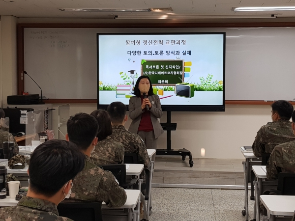 최은희 협회장님이 국방정신전력원에서 실시한 '참여형 정신전력 교관과정' 강의를 다녀오셨습니다.