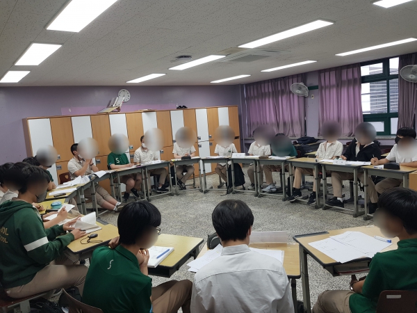 협회에서 진행하고 심사한 서라벌고등학교 학생들의 토론 모습입니다.