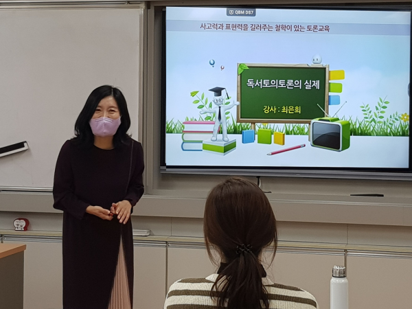 최은희 협회장님의 세종 양지고 교사 연수 모습입니다.