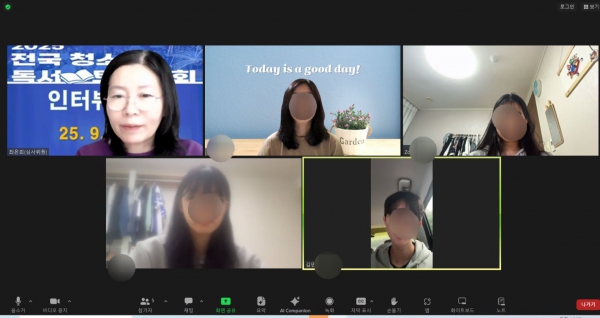 2025 전국 청소년 독서토론대회 1차 입론서 심사 합격팀을 대상으로 한 온라인 인터뷰 심사가 10월18일에 있었습니다.