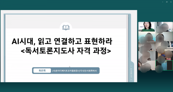 금사도서관 정기강좌 'AI 시대, 읽고 연결하고 표현하라' 독서토론지도사 자격반 강의가 시작되었습니다.