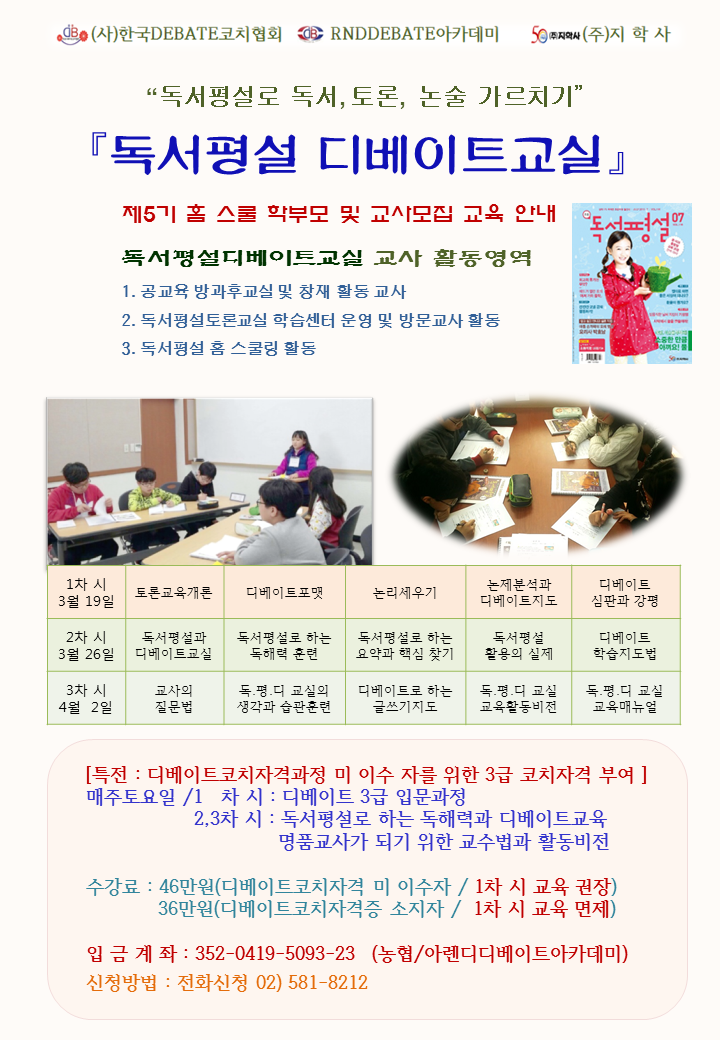 입 금 계 좌 : 352-0419-5093-23 (농협/아렌디디베이트아카데미)